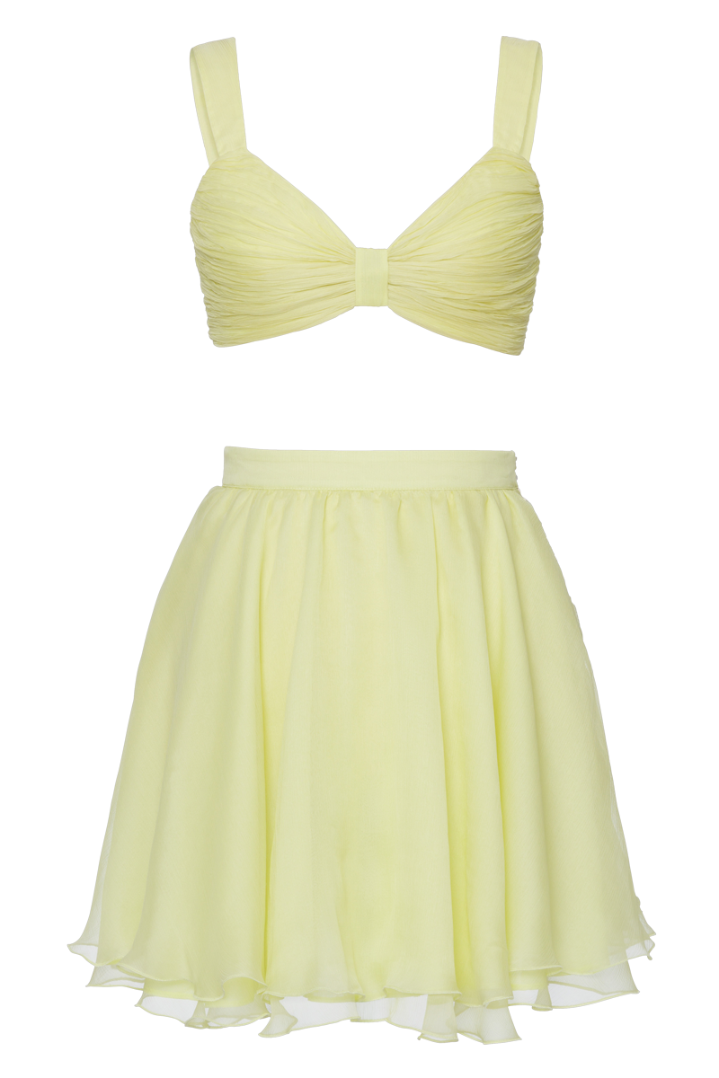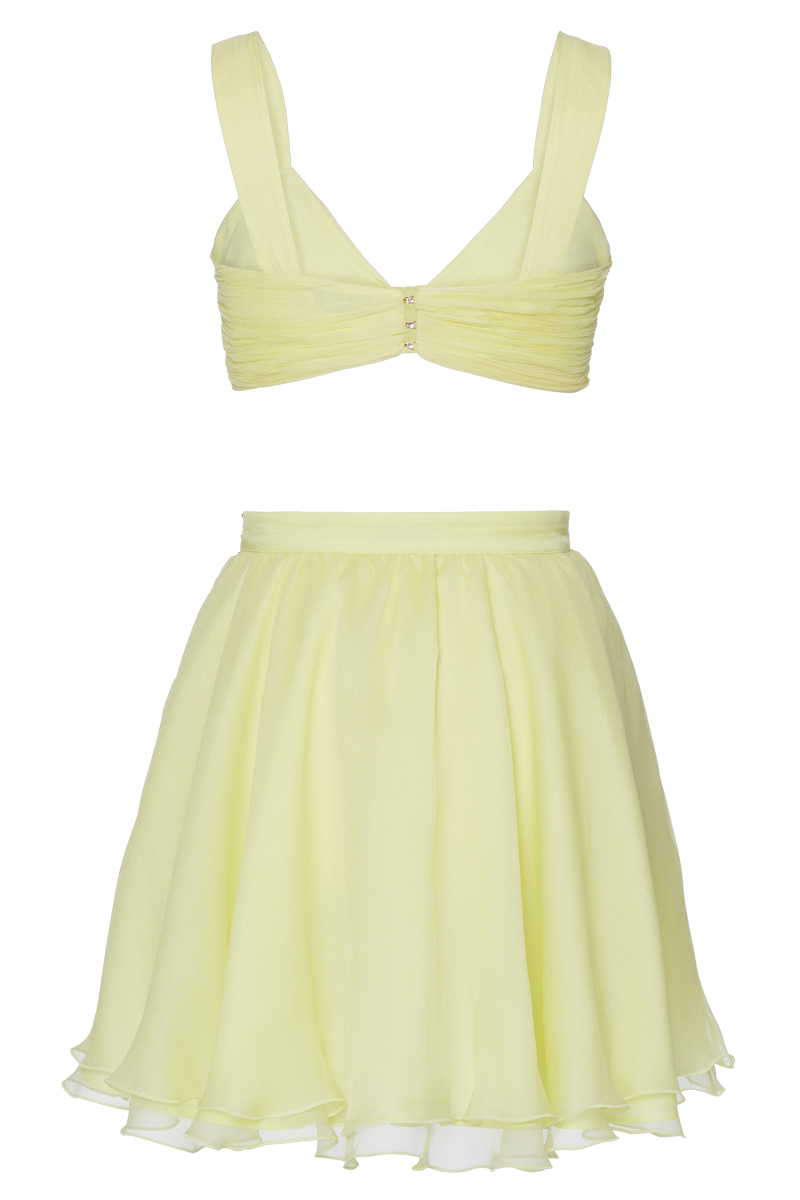 Verspielter, luftiger Minirock aus doppelschichtigem Seidenchiffon. Hohe Taille, voluminöse A-Linie. Nahtverdeckter seitlicher Reissverschluss und Häkchenverschluss mit Strassstein. Blickdichte Optik durch Unterfütterung.
